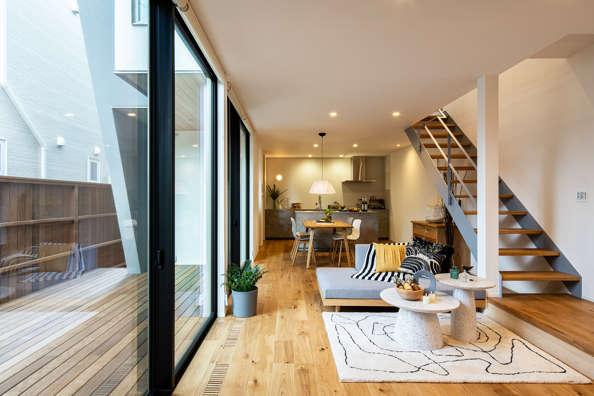 空とつながるようなワイドサッシ、開放感あふれるLDK