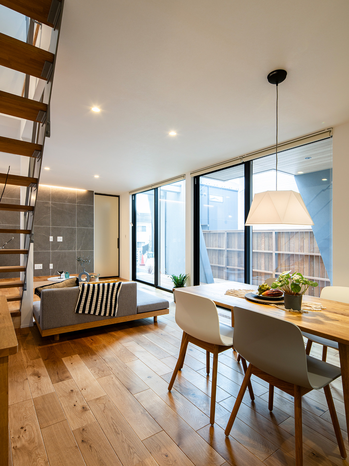 空とつながるようなワイドサッシ、開放感あふれるLDK